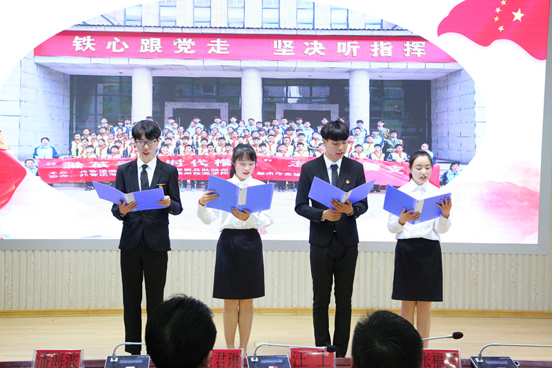 大会在雄壮的国歌声中拉开帷幕。党委委员、副校长余君琳宣读五四表彰文件,校团委书记张婷婷宣读五四系列主题教育活动方案。随后,校领导为优秀团干部、优秀团员、优秀团支书记颁发荣誉证书。并为新入团的30名团员代表佩戴了团徽。