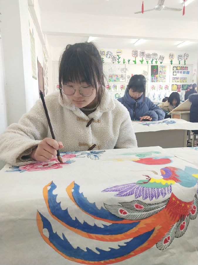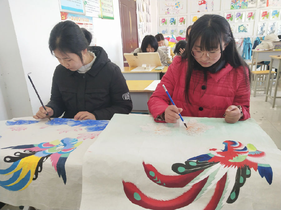 我校凤画传承专职教师陈海珍开展“凤画传承”教学活动