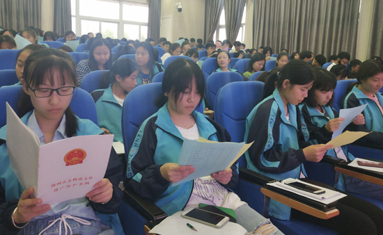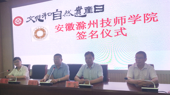 为普及非物质文化遗产知识,加强非物质文化遗产保护意识,营造全校广大师生共同参与、关注和保护滁州优秀文化的良好氛围,学校于6月6日在土木水利楼3楼报告厅开展“手牵手保护文化遗产,心连心共筑精神家园”文化与自然遗产日签名活动。校党委副书记、纪委书记张福兴,教务处处长李平,社会文化艺术系主任梁建国、系党支部书记张梅及部分教师代表出席会议,会议由张梅主持。
