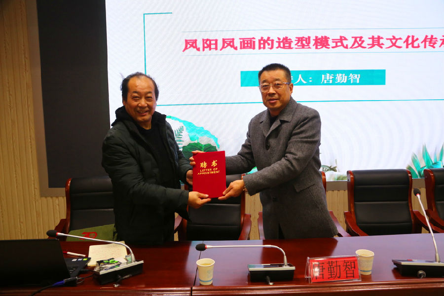 为弘扬中华优秀传统文化、保护传承非物质文化遗产,进一步推动“非遗文化进校园”工作,12月13日,学校在土木水利楼报告厅举行了“省级非物质文化遗产——凤阳凤画走进安徽滁州技师学院”活动。校党委副书记、纪委书记张福兴,办公室主任施亮、教务处处长李平、学生处处长邓四海,社会文化艺术系主任梁建国、党支部书记张梅和艺术组相关教师及部分学生代表出席会议,会议由张福兴主持。