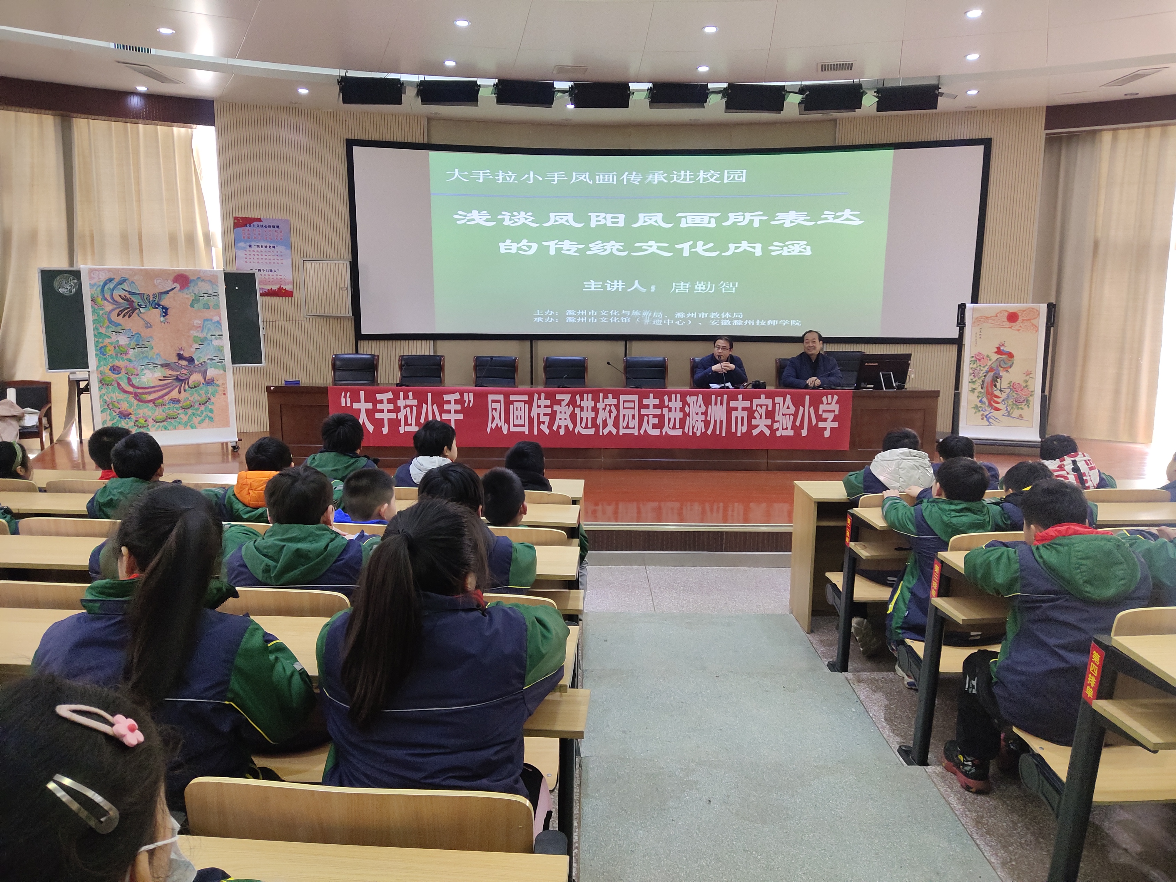 12月11日,由滁州市文化和旅游局、滁州市教育体育局主办,滁州市文化馆(滁州市非遗保护中心)、滁州市机电工程学校(安徽滁州技师学院)承办的“大手拉小手”凤画传承进校园活动第四站走进滁州市工农小学、实验小学,受到了孩子们的热烈欢迎。
