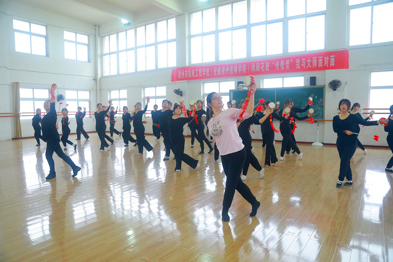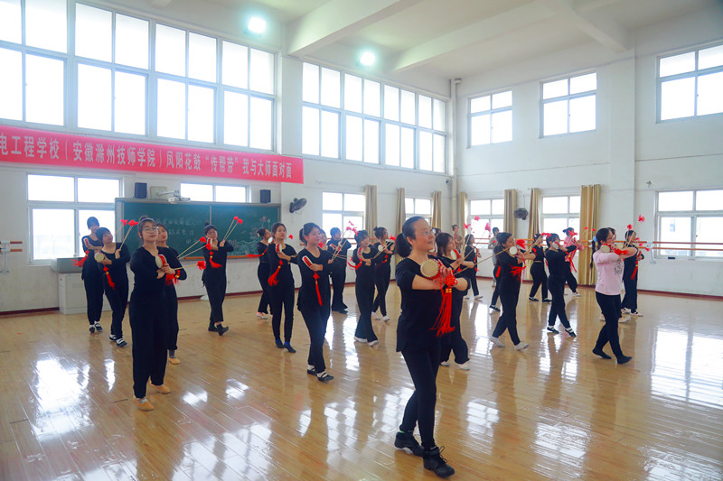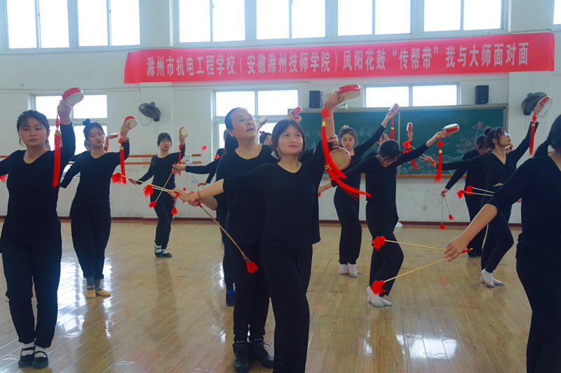 凤阳花鼓是一门集说、唱、跳为一体的综合性表演艺术,于2006年首批录入国家非物质文化遗产名录,距今已有600多年的历史。本次活动通过传承人现场传授,学校教师代表们和花鼓社团的学生们近距离领略了国家级非遗项目“凤阳花鼓”的独特魅力。
