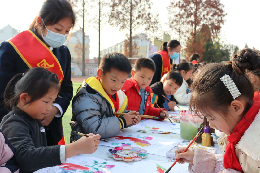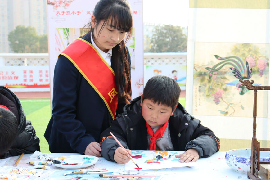 孩子们专心致志认真听着老师的非遗讲解,时不时还发出提问,和传承人互动;或拿起画笔,对着一幅幅凤画一笔一笔描绘,展示自己的劳动成果;或托着腮,围着志愿者一起看着非遗演示,有说有笑,谈论着来年非遗进校园的约定……举手投足间都传递着对滁州当地优秀文化的倾心与热爱。