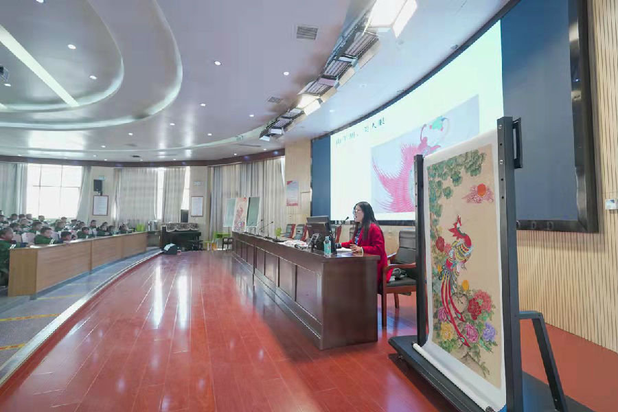 在厚德厅,滁州技师学院凤画传承负责人陈海珍给师生们做《凤阳凤画的起源及艺术特色》专题讲座。通过讲座师生得知:凤画源于明初,多以凤凰为主题,象征吉祥幸福,是安徽省凤阳县一带流传的民间绘画形式,已有六百余年的历史,2006年入选安徽省首批省级非物质文化遗产名录。凤画以“蛇头”“龟背”“鹰嘴”“鹤腿”“鸡爪”“如意冠”“九尾十八翅”的独特艺术造型,及富贵吉祥的形意、色彩艳丽的艺术形象受到大众的喜爱和推崇。