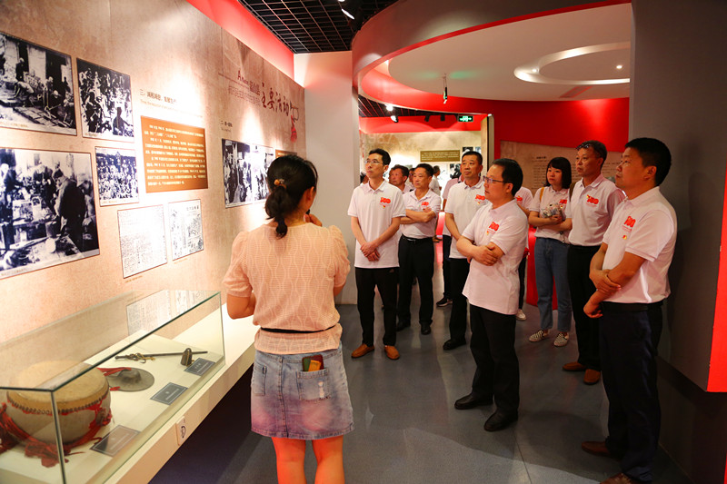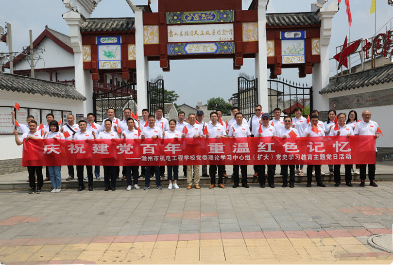 为进一步提高学校干部职工思想认识和政治站位,开展好党史学习教育,推进党史学习教育全覆盖,紧紧围绕“学党史、悟思想、办实事、开新局”工作目标。 6月29日,学校党委委员、副校长余君琳(负责党委工作)、党委副书记、纪委书记张福兴带领党委理论学习中心组(扩大)全体人员到位于明光市革命老区自来桥镇的嘉山县抗日民主政府纪念馆开展“庆祝建党百年、重温红色记忆”主题党日活动,帮助党员干部从党的历史中汲取精神力量和智慧养分。