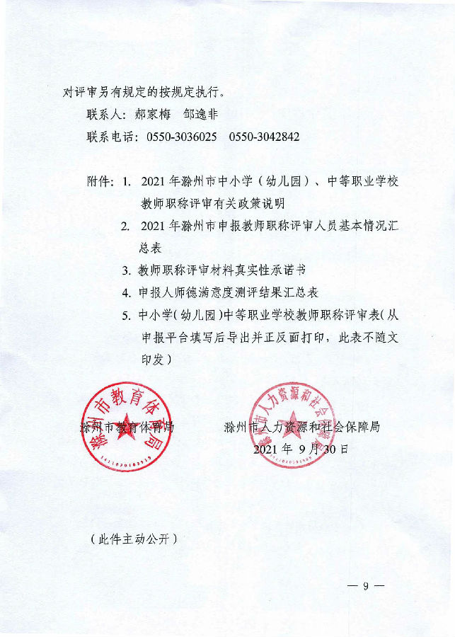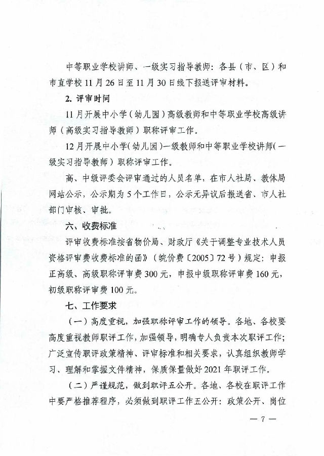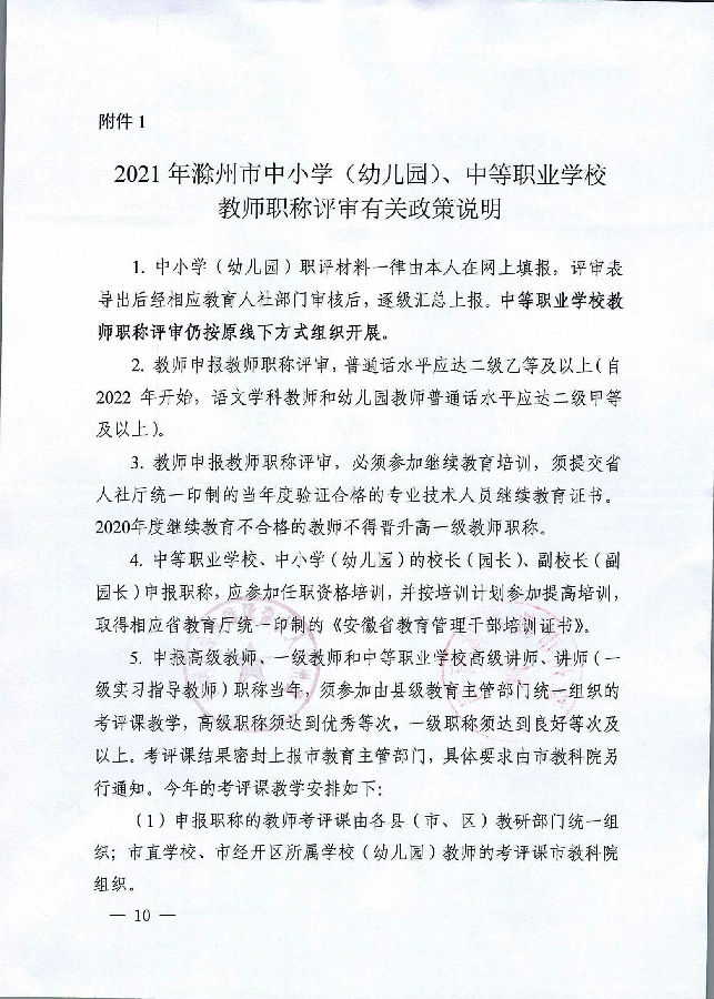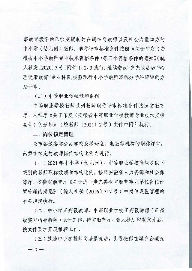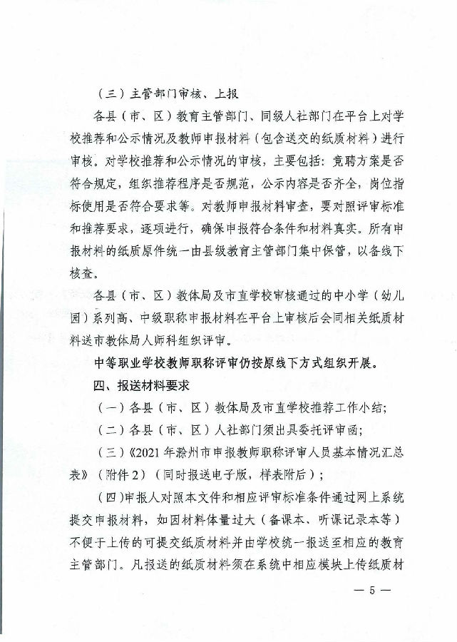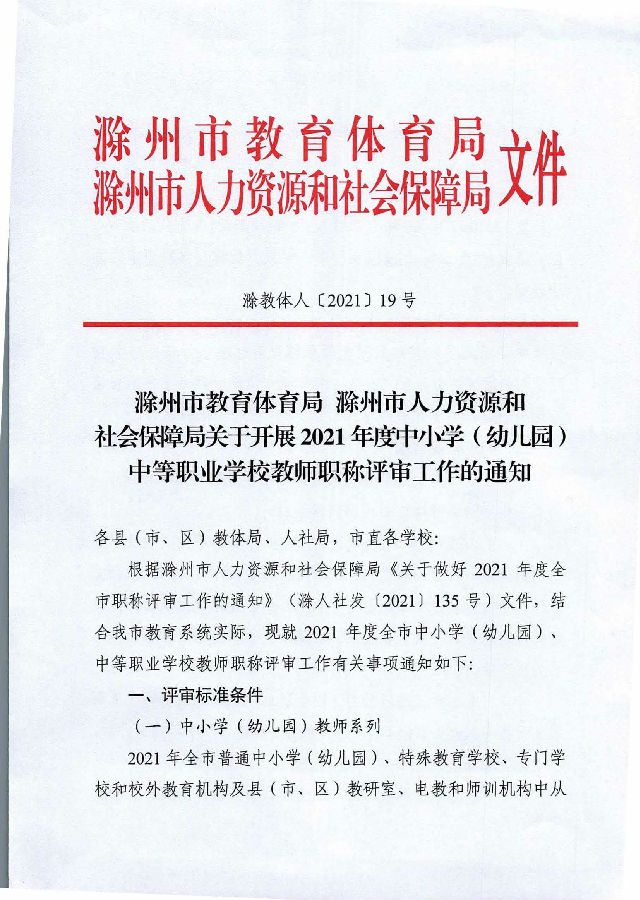 转发滁州市教育体育局 滁州市人力资源和社会保障局关于开展2021年度中小学(幼儿园)中等职业学校教师职称评审工作的通知