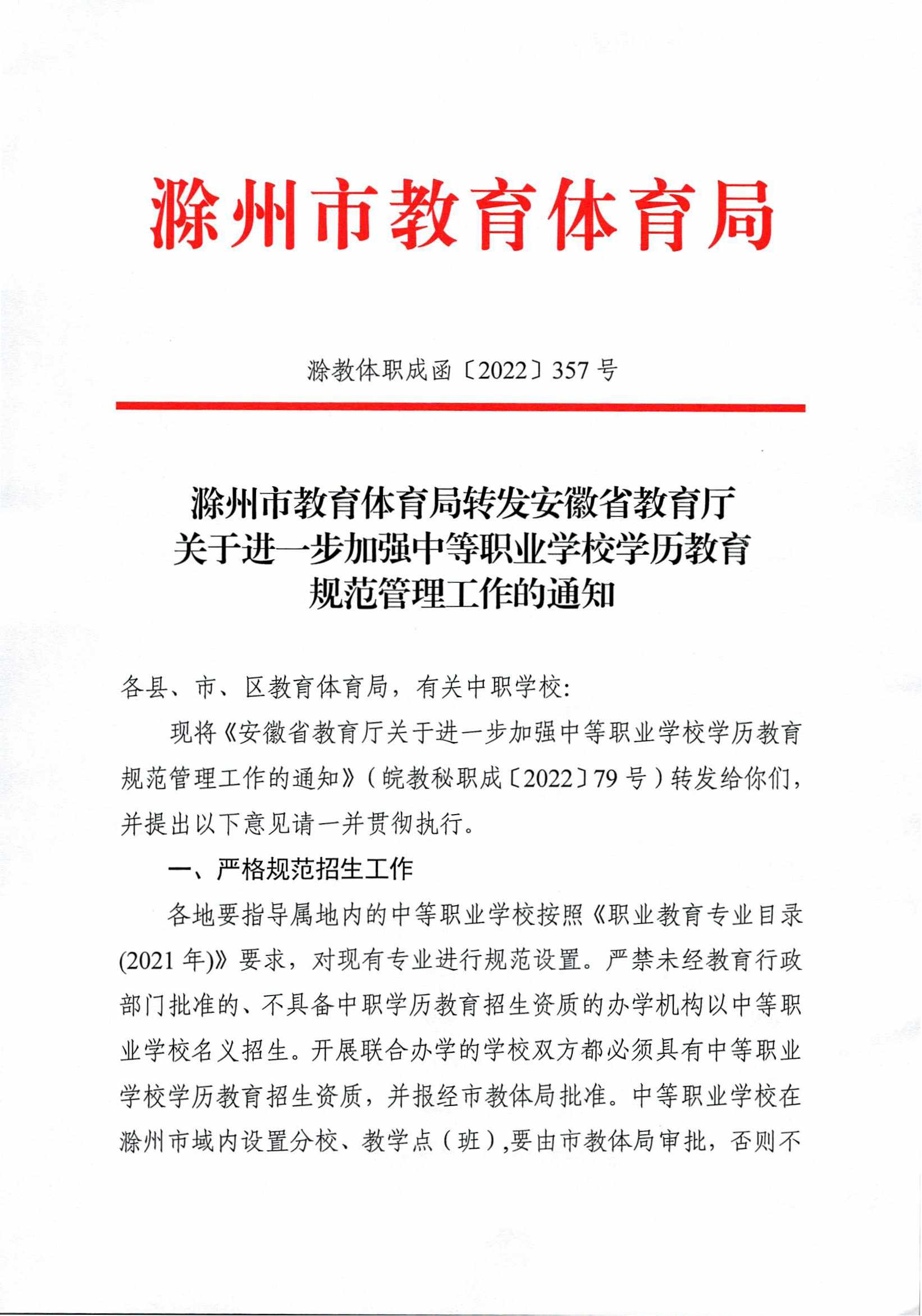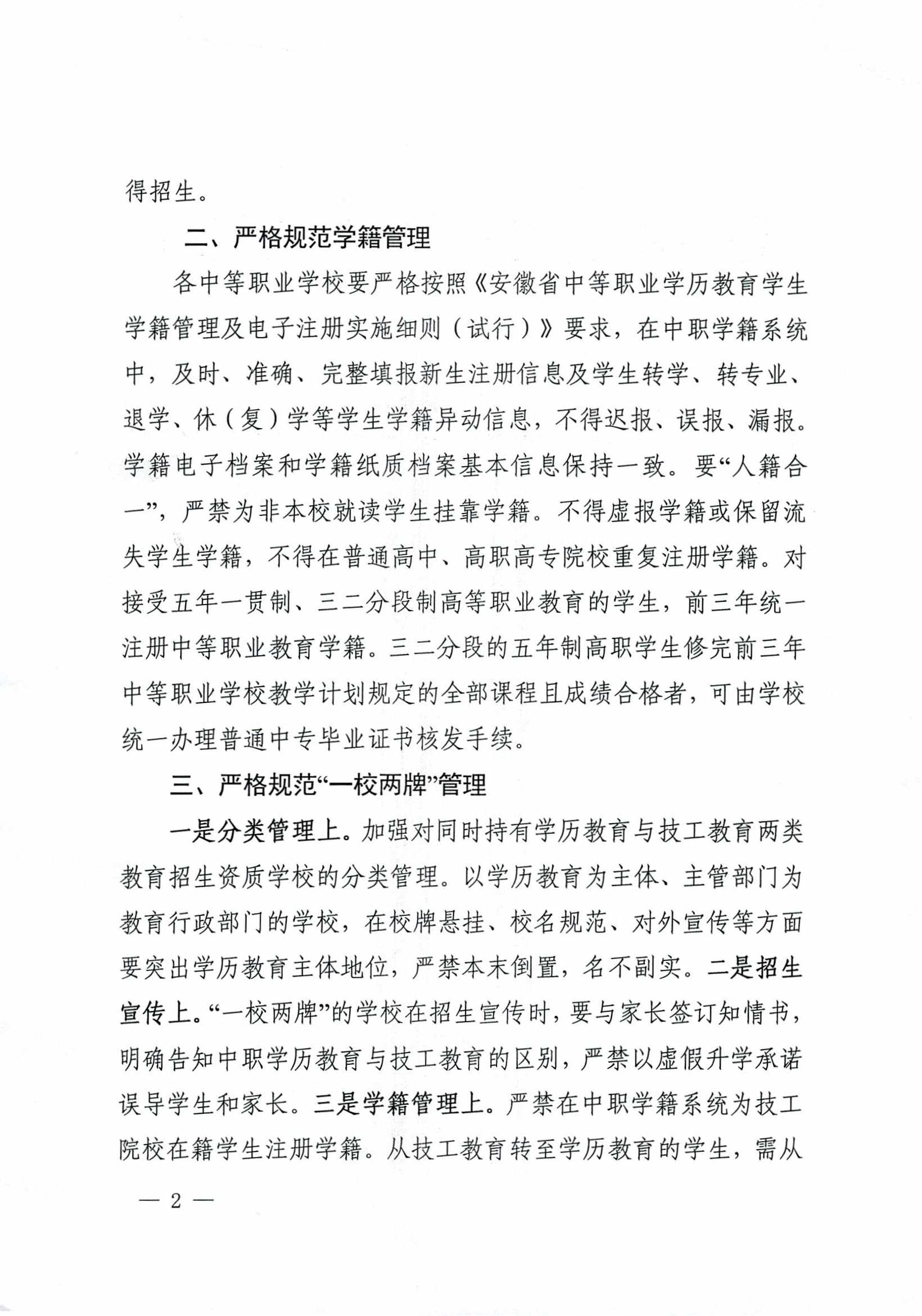 安徽省教育厅关于进一步加强中等职业学校学历教育规范管理工作的通知
