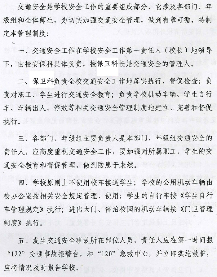 滁州市机电工程学校交通安全管理制度