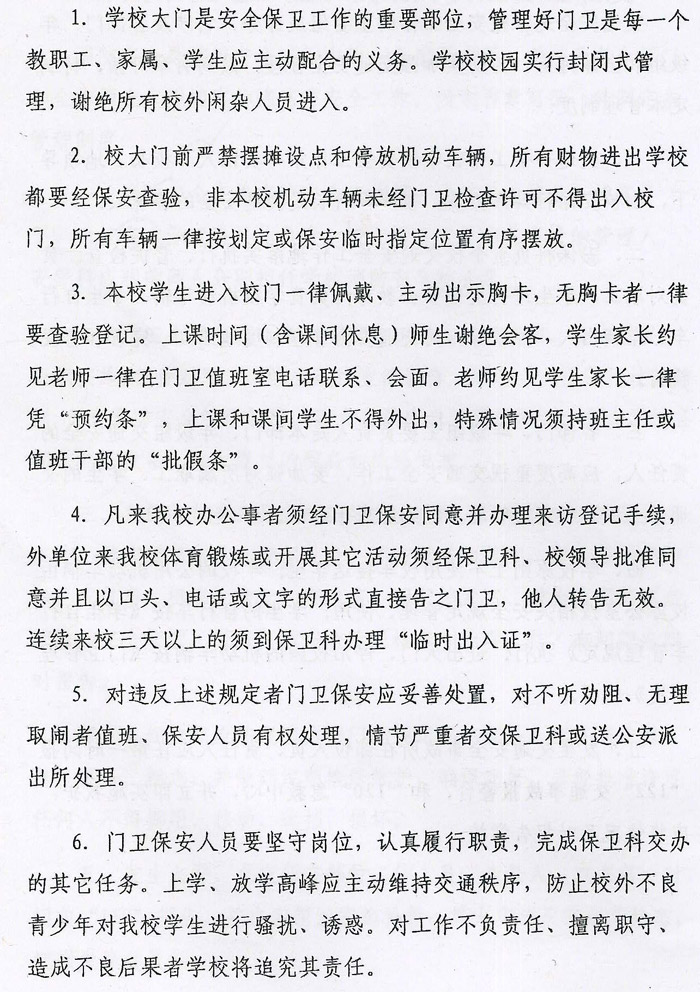 滁州市机电工程学校门卫安全管理制度