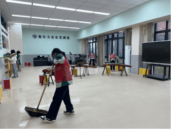 同学们轻拭钢琴,整理教材教具,志愿者们第一次亲手触摸琴键,认识一台钢琴如何成为幼儿音乐启蒙的“声音起点”。