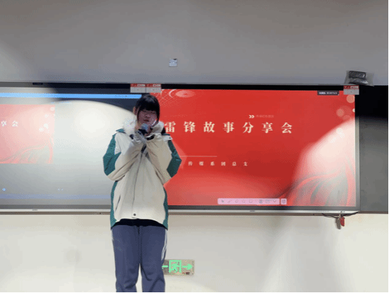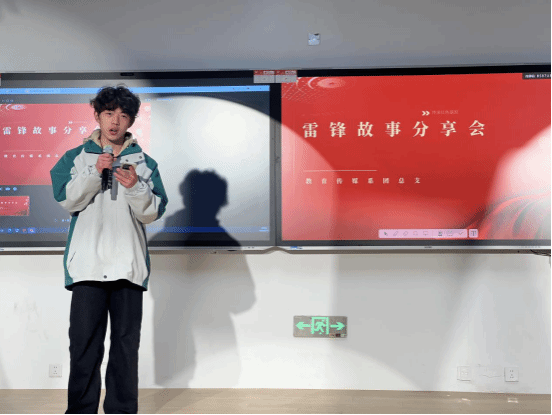 在分享环节,五位团员代表依次上台,围绕“雷锋精神的时代内涵”主题,结合自身理解讲述雷锋事迹。虽因准备时间有限,讲述者未能完全脱稿,需借助手机或笔记提示完成讲述,但每位同学均以真诚态度,努力复述雷锋助人为乐、爱岗敬业、刻苦钻研的经典故事片段。24级广播影视节目制作傅安义同学在分享后坦言:“第一次在这么多人面前讲雷锋,有些紧张,但每讲一次,自己对‘奉献’二字的理解就更深一层。”