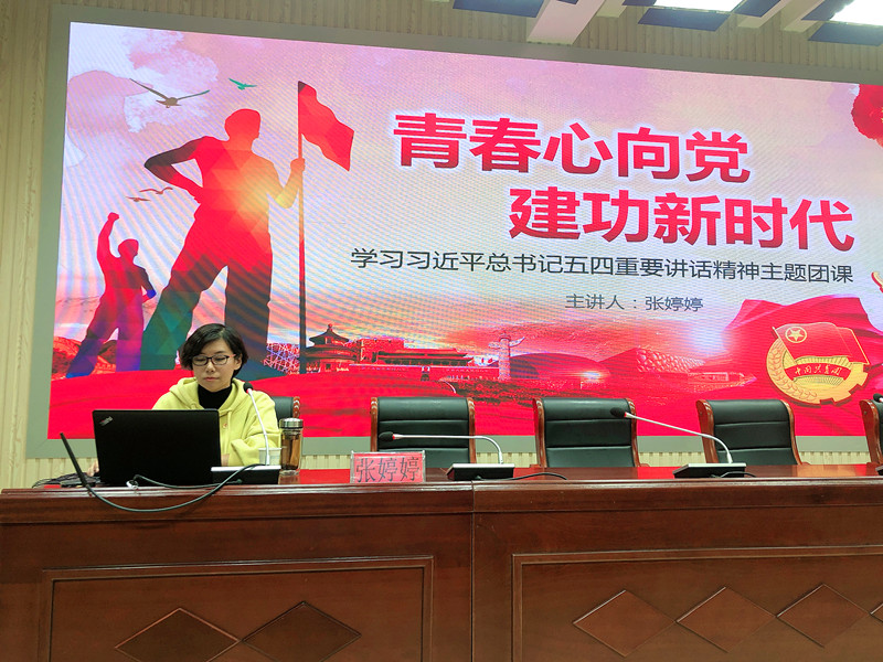 最后,团委书记张婷婷给全体团学干部讲授了培训班第一课《学习习近平总书记五四重要讲话精神》主题团课。