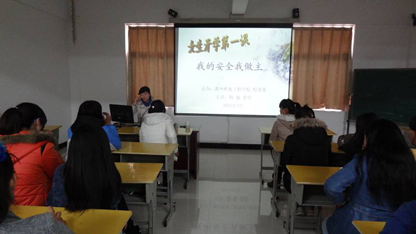 为增强女生安全防范意识,提高女生自我保护能力,促进广大女生身心健康发展,帮助新生更好地适应中职生活,3月20日下午,校团委在行政楼多媒体教室为15级春招女生举办了一场题为“我的安全我做主”女生安全教育专题讲座。讲座由心理咨询室陶璇老师主讲,今年招收的春招新生女生及部分老生代表聆听了讲座。