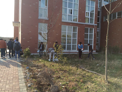 值此向雷锋同志学习52周年,植树节之际, 3月5日下午,校团委组织全校学生利用课外活动时间在校园内外开展“学雷锋志愿者美化校园活动”。