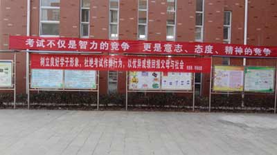 校园内悬挂宣传条幅,加强考风考纪教育