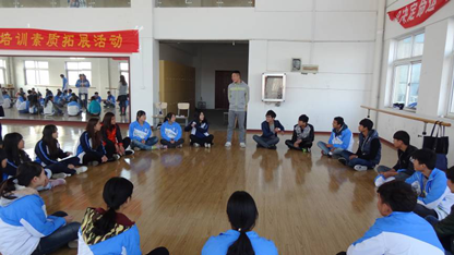 近日,由校团委主办的素质拓展活动在校舞蹈房举行。参加本次团学培训班的学生干部全部参与了活动。