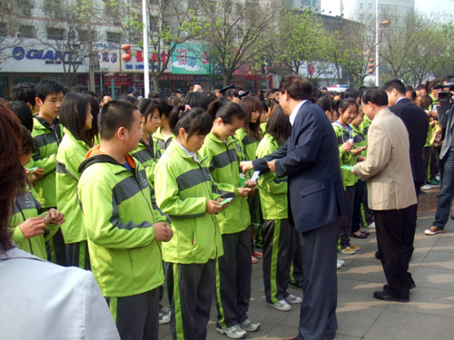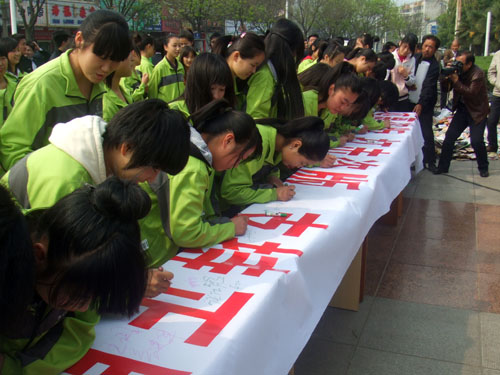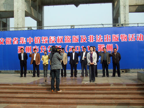 4月25日上午,一职高团委组织100名学生穿着整齐校服在人民广场,参加了由滁州市扫黄打非办、宣传部、教育局等多家单位举办的“远离盗版,打击盗版,支持正版,保护知识产权”的启动仪式。仪式上同学们进行了集体宣誓和签名,有关单位领导为同学们发放了保护知识产权的绿书签,仪式结束后,同学们观看了盗版影像制品、书刊的集中销毁场景,深受教育。